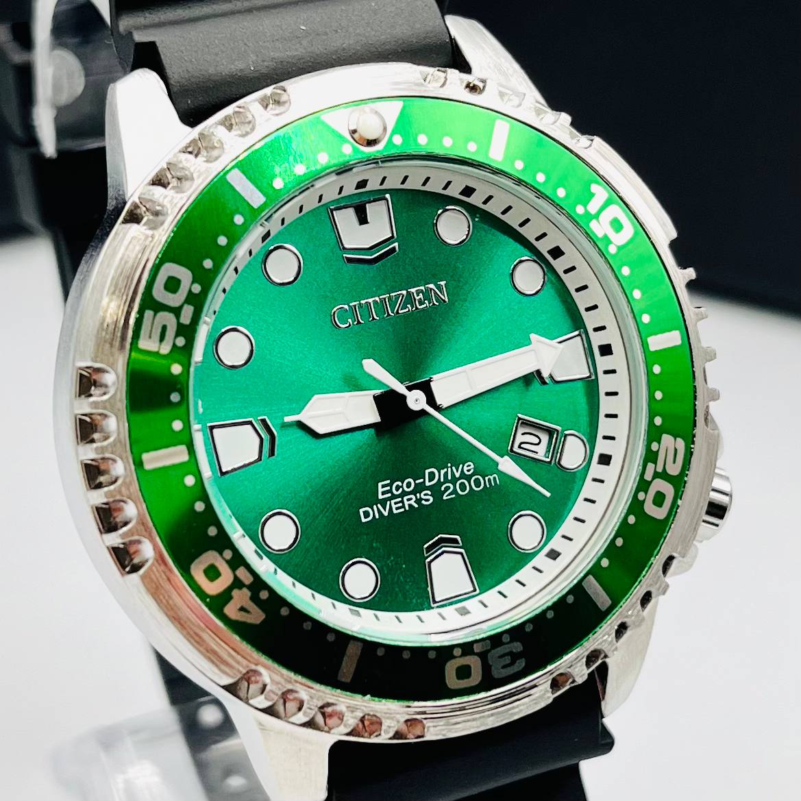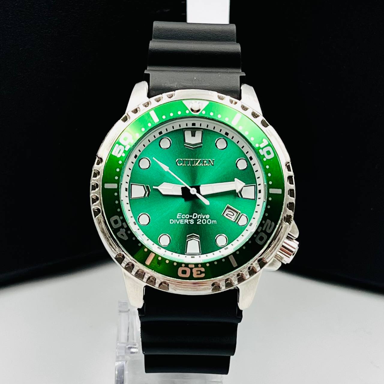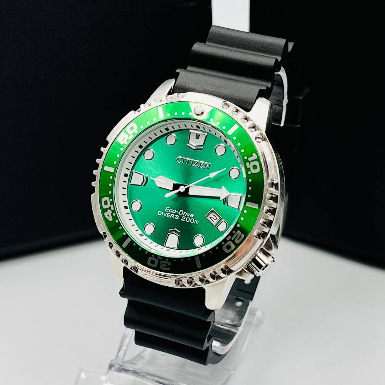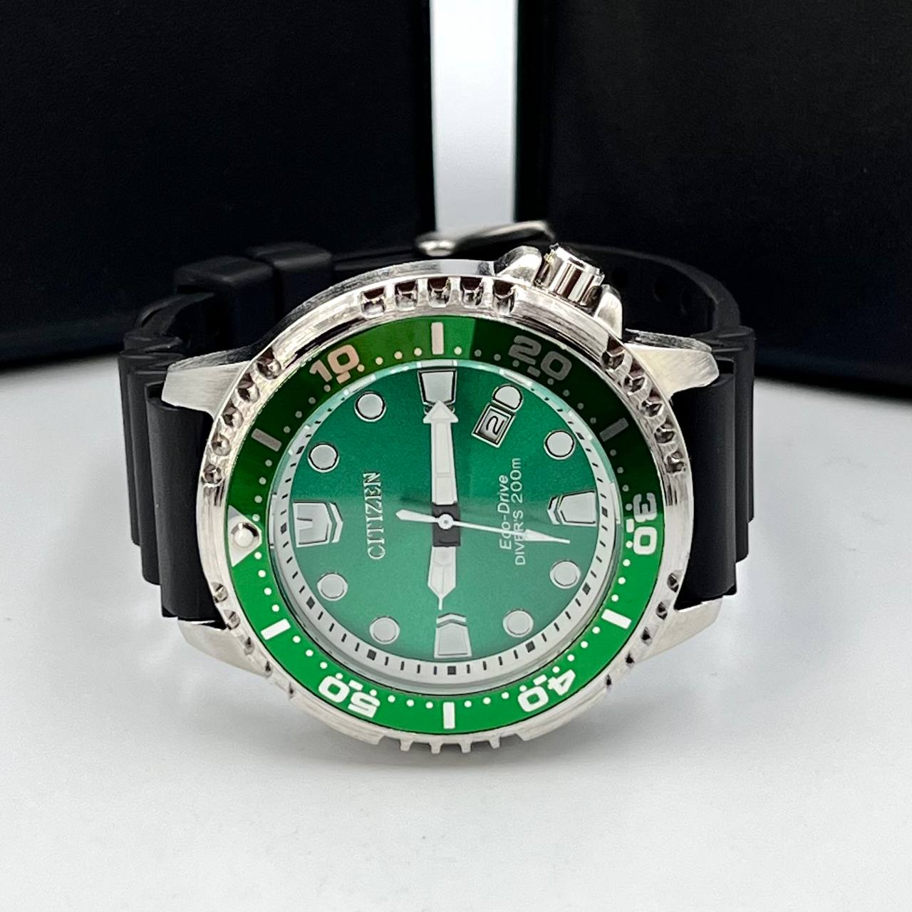 Relógio Citizen Aqualand masculino verde preto c/ caixa a prova dagua