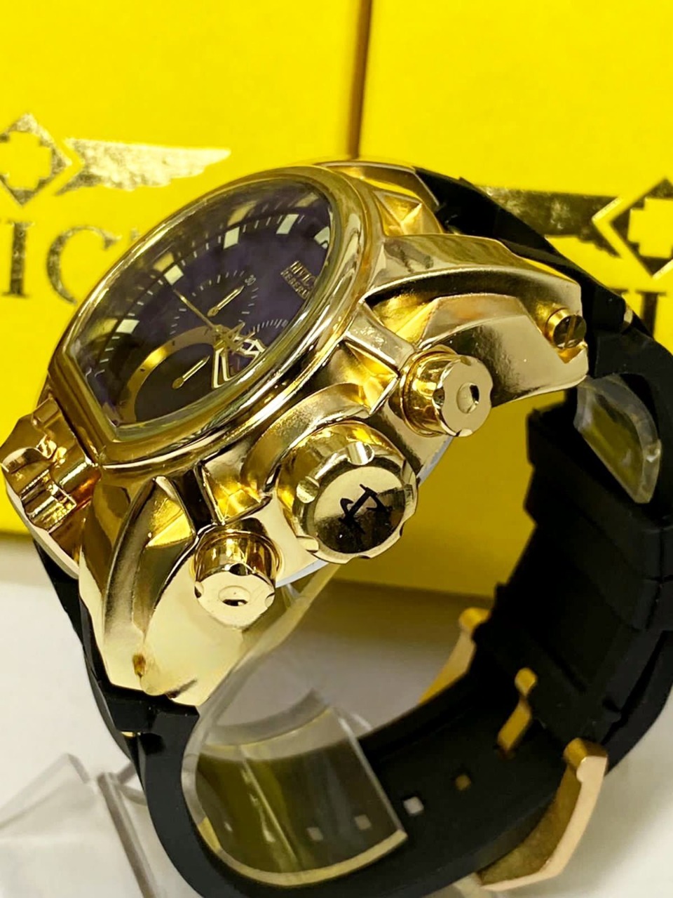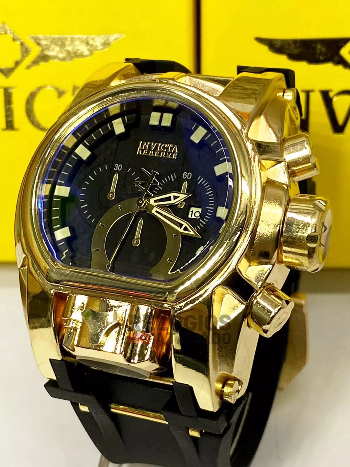Relógio Masculino Invicta Zeus Magnum Linha Gold One Dourado fundo Preto Pulseira de Borracha Preta